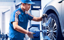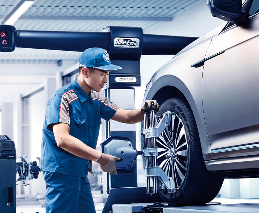 对四轮进行调整校对以恢复标准位置, 保障车辆行驶的稳定性和安全性。